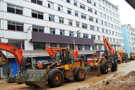 8月18日凌晨5點(diǎn),甘南藏族自治州舟曲縣甘南公路總段舟曲公路管理段,數(shù)臺(tái)徐工裝載機(jī)正在緊張地鏟運(yùn)清理路面上的石塊,以進(jìn)一步拓寬路面。舟曲特大洪水泥石流災(zāi)難發(fā)生以來(lái),為保障大批救援物資通過(guò)車運(yùn),快速送達(dá)搶險(xiǎn)救援一線,舟曲公路管理段施工人員全力搶修被沖毀的路基,24小時(shí)不停歇清理路面障礙物。在搶修中,徐工裝載機(jī)全力投入,鏟運(yùn)沙袋、清理石塊、轉(zhuǎn)運(yùn)災(zāi)民,成為搶險(xiǎn)救災(zāi)的利器,在特大災(zāi)害面前托起了生命之舟。