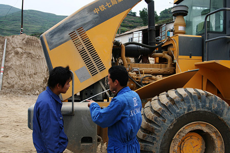 2008年6月12日,在蘭渝鐵路天池坪隧道施工的徐工ZL50G型側(cè)卸裝載機(jī),由于駕駛員的誤操作導(dǎo)致液壓管故障,施工方向徐工在武都的服務(wù)部電話求援。服務(wù)部在接到電話后第一時間,立即安排服務(wù)工程師劉安帶上備件趕往工地。由于途經(jīng)的212國道年久失修,大地震對其又造成了很大的破壞,在不斷出現(xiàn)險情的道路上,劉安連夜開車3個多小時到達(dá)工地,更換完液壓管后已經(jīng)接近半夜11點(diǎn)。