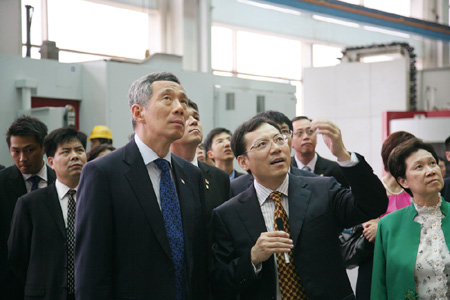 “深深敬佩你們能在這樣短的時(shí)間內(nèi)取得如此開創(chuàng)性的事業(yè)?!?月9日下午,新加坡總理李顯龍及夫人在副省長郭開朗的陪同下考察三一。在聽完三一集團(tuán)總裁唐修國對(duì)三一發(fā)展情況的匯報(bào)后,李顯龍對(duì)三一依靠自主創(chuàng)新不斷開拓國際市場(chǎng)表示贊許。