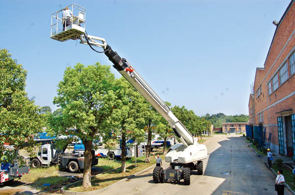 中聯(lián)重科專車公司把握當(dāng)前國(guó)際高空作業(yè)機(jī)械的總產(chǎn)量遠(yuǎn)遠(yuǎn)不能滿足市場(chǎng)需求的機(jī)遇,在短短3個(gè)月內(nèi),自行研制出了設(shè)計(jì)新穎、實(shí)用可靠的38米自行走高空作業(yè)平臺(tái)。
