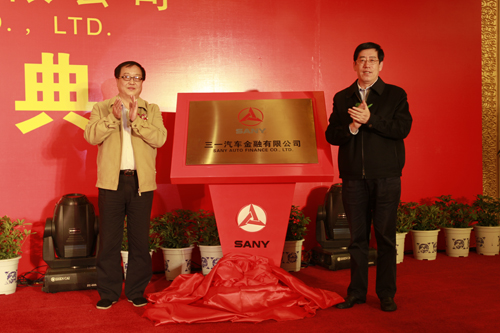 湖南省人大常委會(huì)副主任肖雅瑜、湖南省副省長(zhǎng)韓永文為三一汽車金融有限公司揭幕