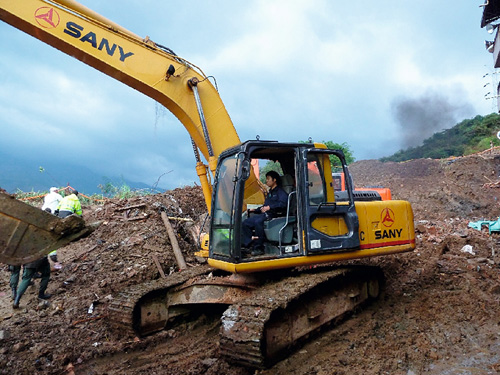 三一挖機(jī)在救援現(xiàn)場(chǎng)