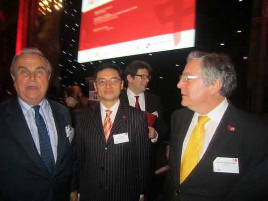 與英中貿易協(xié)會會長、前倫敦市長白樂威爵士(左)等在中英工商界晚宴現(xiàn)場