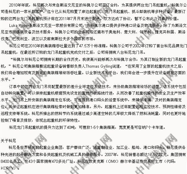 2011-01-21 10:46 性質(zhì):翻譯 作者:蘆婷婷 來(lái)源:中國(guó)港機(jī)網(wǎng)譯
