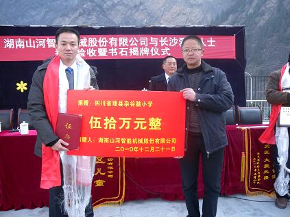 汶川地震的陣痛慢慢隱去,在全國人民的大力支持下,汶川大地?zé)òl(fā)出新的面貌。我們看到了堅固的教學(xué)大樓、美麗的居住環(huán)境……每一個汶川人臉上開始有了勇敢而欣慰的笑容。而今天,山河智能裝備集團(tuán)帶著牽掛又來到了這片土地,集團(tuán)工會副主席代表集團(tuán)參加理縣雜谷腦小學(xué)的竣工儀式。在汶川地震發(fā)生的時候,山河智能就以最快的速度,組建了一支救援隊趕赴汶川,并捐贈錢物共計500萬元,此后又捐款50萬元用來建設(shè)理縣雜谷腦小學(xué)圖書館。這三年來集團(tuán)不間斷的派人前往理縣看望,并給予不斷的支援。