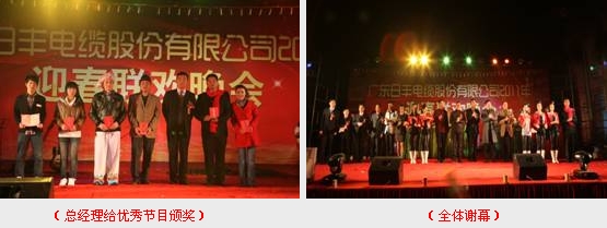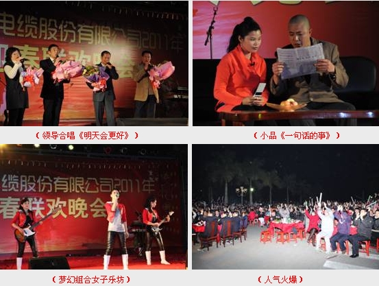 本站消息:玉兔報(bào)春來,又是一個(gè)美麗的季節(jié),時(shí)光的車輪又留下了一道深深的印痕。2011年1月22日,日豐電纜這個(gè)大家庭歡聚一堂,共同慶祝這個(gè)歡樂的節(jié)日!伴隨著冬日里溫暖的陽光,滿懷著喜悅的心情,日豐電纜2011年迎春聯(lián)歡晚會(huì)成功落下帷幕。