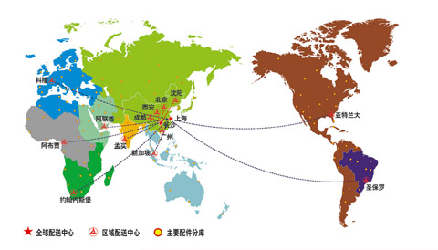 三一全球倉儲體系包括2個全球配送中心——長沙、上海,13個二級區(qū)域配送中心——沈陽、北京、西安、成都、廣州、亞特蘭大(美國)、孟...