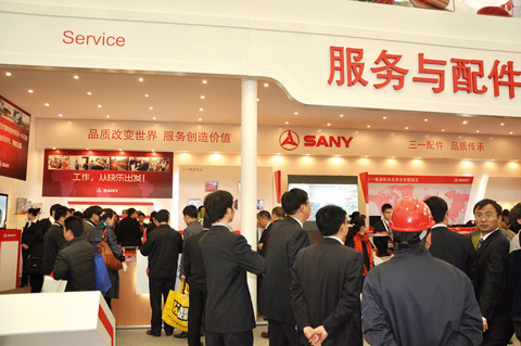 在2010 年上海寶馬展中,作為唯一有服務與配件獨立展區(qū)的主機型生產(chǎn)企業(yè),三一以規(guī)模最大、形象最佳、參展配件種類最全、數(shù)量最多、品質(zhì)最佳、最具鮮明特點的展臺形式,向廣大觀眾和海內(nèi)外客戶代理商及行業(yè)人士展示了獨具一格的明星配件。