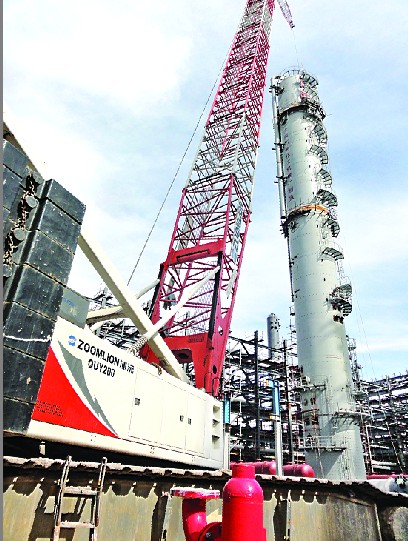 目前,“大乙烯”工程進(jìn)入決戰(zhàn)時期,在有關(guān)部門大力支持下,工程建設(shè)有序推進(jìn),乙烯裂解裝置長周期設(shè)備,大件設(shè)備吊裝,混凝土澆筑、鋼結(jié)構(gòu)安裝等有序進(jìn)行。據(jù)悉,在吊裝超限大塔、反應(yīng)器等大型設(shè)備時,已經(jīng)使用了1400噸履帶式起重機(jī)。