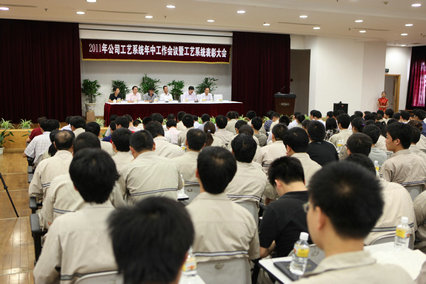 7月8日,公司2011年工藝系統(tǒng)年中工作會議暨工藝系統(tǒng)表彰大會在長興分公司召開。公司總裁康學(xué)增在會上作重要講話,會議由公司副總裁黃紅雨主持。