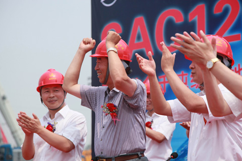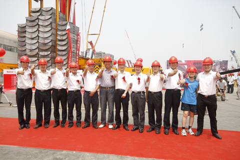 梁穩(wěn)根、唐修國、易小剛等集團(tuán)董事親臨現(xiàn)場,對SAC12000全球首吊的圓滿成功表示祝賀。