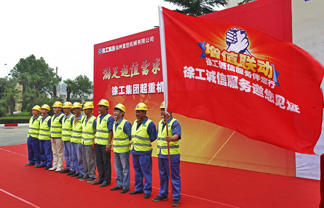 “我們鄭重承諾,以最飽滿的熱情、最堅韌的毅力、最真誠的態(tài)度、最專業(yè)的技術(shù),為客戶提供最優(yōu)質(zhì)的徐工頂級服務(wù)。傳播徐工誠信文化,展示徐工誠信品質(zhì),在全球每一寸土地上,誓讓徐工大旗高高飄揚!”此時此刻,徐工重型的40名服務(wù)人員代表在徐工集團董事長王書記的面前鄭重承諾,一聲聲鏗鏘有力誓言、一句句擲地有聲的誓詞拉開了徐工重型“增值聯(lián)動,徐工誠信服務(wù)伴您行”活動的大幕。