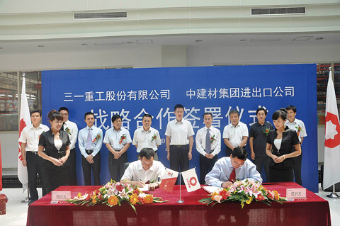 近日,三一重工副總裁伏衛(wèi)忠與中建材集團(tuán)進(jìn)出口公司副總經(jīng)理張勁松共同簽署戰(zhàn)略協(xié)議。合作雙方表示,作為各自專業(yè)領(lǐng)域的龍頭企業(yè),彼此擁有無法替代的個(gè)體優(yōu)勢,雙方攜手實(shí)現(xiàn)強(qiáng)強(qiáng)聯(lián)合、優(yōu)勢互補(bǔ)、資源共享,為民族企業(yè)開拓國際市場提供有力支持。