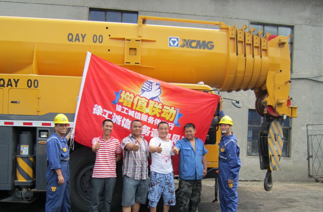 駕駛服務車行駛了幾個小時后,終于到達施工地點。剛到達時服務小分隊見陳老板正在與工人開會,一轉身看到徐工的服務車,很是驚訝,沒想到小分隊會來那么早,忙招呼隊員們休息一會在工作。隊長林國慶會意的一笑“這是我們的職責”。趁吊車還沒有工作,隊員們帶著工具,直接就去檢查吊車。陳老板先后購買了3臺徐工吊車,分別是QY25K、QY50K、QY70K,隊員們爬上鉆下,一絲不茍的把三臺車檢查完,經(jīng)檢查25K的吊車起臂時抖動,分析后是關卡脫落,隊員們憑借著過硬的技術,問題很快得以解決,其余兩臺車一切正常。