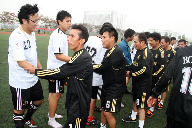 來自徐工集團進出口公司的員工和中國礦業(yè)大學(xué)的師生自發(fā)組織成啦啦隊,為雙方叫好加油。通過這次友誼賽,雙方交流了各自突出的球技,而且增進了感情,玻利維亞的朋友也深入了解了徐州的熱情、包容與活力。比賽以玻利維亞工程兵學(xué)員隊獲勝而圓滿結(jié)束。