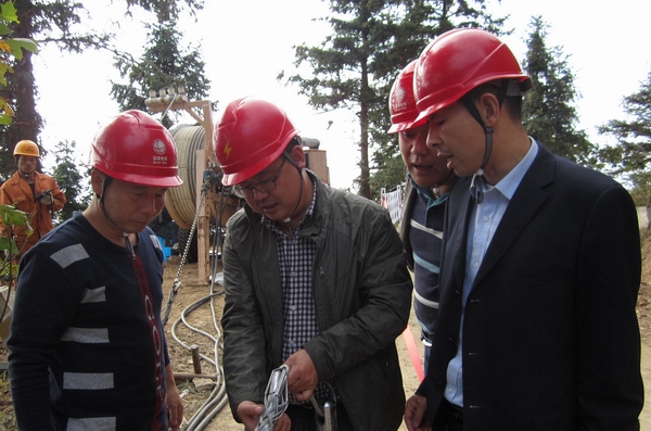 麗水電力局領(lǐng)導(dǎo)觀看碳纖維導(dǎo)線牽引方式