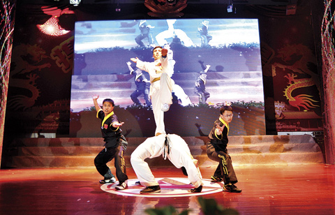 制造商務(wù)本部張梁等人的武術(shù)表演《武動(dòng)青春》著實(shí)讓現(xiàn)場(chǎng)觀眾大吃一驚,漂亮的空翻,專業(yè)的招式,使得臺(tái)下叫好連連,認(rèn)識(shí)張梁的同事不禁贊嘆道:“沒想到平時(shí)斯斯文文的張梁原來是個(gè)武林高手呀!”整段表演中最出彩的要數(shù)兩位雙節(jié)棍高手的登臺(tái),雙節(jié)棍在他們的手中好像生了根一樣,絢麗多變的棍花讓觀眾看得眼花繚亂。突然,整個(gè)禮堂燈光全部熄滅,兩人手中的雙節(jié)棍竟然發(fā)出五彩的光芒,整個(gè)舞臺(tái)上只看到四朵棍花時(shí)而單獨(dú)飛舞,時(shí)而互相交錯(cuò),別出心裁的設(shè)計(jì)讓人耳目一新。