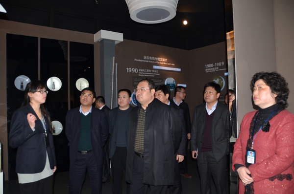 郭區(qū)長一行在高級行政總監(jiān)周東佼的陪同下參觀考察了遠(yuǎn)東國際電線電纜體驗(yàn)式博物館。博物館展示出世界電線電纜的的發(fā)展歷程、遠(yuǎn)東電纜發(fā)展歷史等中國線纜行業(yè)資料及千余種電線電纜實(shí)物。在集團(tuán)總裁工作部總監(jiān)助理趙靈玲的介紹下,郭區(qū)長一行對遠(yuǎn)東的創(chuàng)始及發(fā)展有了全面了的了解,對于企業(yè)的規(guī)模、制度及慈善事業(yè)都做出贊賞。