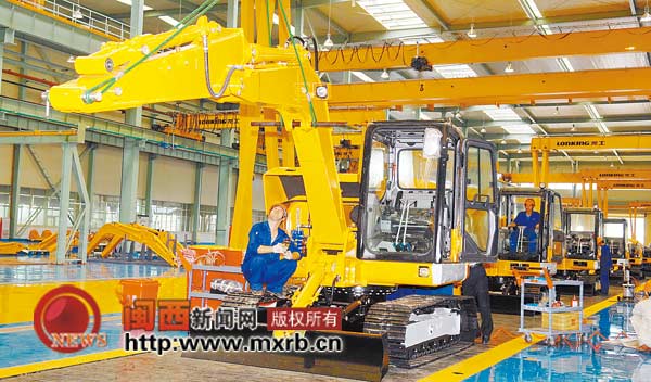昨日,記者在龍巖經(jīng)濟技術(shù)開發(fā)區(qū)我市首個百億車間——龍工(福建)挖掘機有限公司總裝現(xiàn)場看到,工人們正在緊張有序地忙碌著,車間呈現(xiàn)一派熱火朝天的景象。據(jù)公司負(fù)責(zé)人介紹,1—2月份,該公司累計完成產(chǎn)值5000萬元。