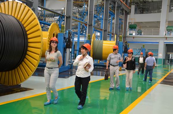 中午,遠東控股集團董事局主席設宴款待來自哥倫比亞的客人。下午,考察團參觀了新遠東交聯(lián)三廠,實地參觀考察遠東電纜的生產(chǎn)情況。寬敞整潔、高科技含量的生產(chǎn)車間給考察團留下了深刻的印象。