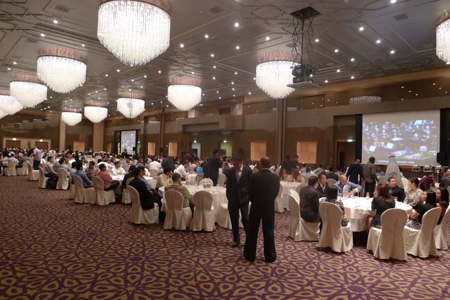 展會期間,為鞏固徐工產(chǎn)品在卡塔爾市場的強勢地位,并進一步提升徐工品牌形象,我集團卡塔爾合作伙伴在DOHA Grand Hyatt Hotel( 凱悅酒店) 隆重舉行了500人的徐工集團2012年度新產(chǎn)品發(fā)布會暨新老客戶答謝晚宴??ㄋ柦?jīng)濟部負(fù)責(zé)人,中國駐卡塔爾張志良大使,卡塔爾當(dāng)?shù)刂饕こ坛邪矩?fù)責(zé)人,以及駐卡塔爾中資企業(yè)代表,中交集團,中港,中石油,中國工商銀行等主要負(fù)責(zé)人均出席了此次晚宴。