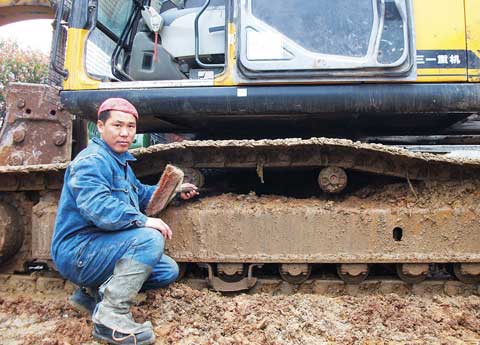 有一次,天下大雨,張德庫接到客戶的召請電話,顧不上旅途勞頓,立即趕往現(xiàn)場。由于設(shè)備在山上施工,焊接極為困難。為了不影響客戶工作,張德庫當(dāng)機立斷,匍匐著身子鉆進挖機底部,進行焊接。挖機底部沒有一點多余空間,雨水和汗水齊下,張德庫憑借堅強的意志,最終出色完成工作。從挖機底部爬出來時,他也已成了泥人。