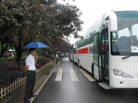車(chē)隊(duì)司機(jī)駐足等候下班員工
