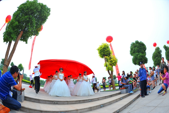 巨幅紅蓋頭掀起,26位新娘穿越紅綾,依次出場