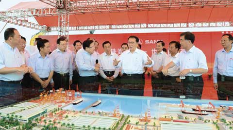 三一海洋重工(珠海)產(chǎn)業(yè)園奠基不到一個(gè)月,便迎來(lái)了中央高層的關(guān)注。5月17日,中共中央政治局常委李長(zhǎng)春一行在中共中央政治局委員、廣東省委書記汪洋的陪同下,來(lái)到了三一珠海產(chǎn)業(yè)園。李長(zhǎng)春認(rèn)真聽(tīng)取了三一重工董事長(zhǎng)梁穩(wěn)根的匯報(bào),他認(rèn)為,三一重工作為中國(guó)第一、世界第六的工程機(jī)械企業(yè),在艱苦磨礪中創(chuàng)造了具有國(guó)際影響力的品牌,鼓勵(lì)三一堅(jiān)定不移地走好自主創(chuàng)新之路,爭(zhēng)取在海洋裝備方面也早日進(jìn)入世界先進(jìn)行列。