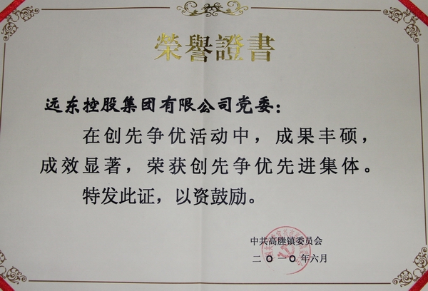 大會(huì)首先頒發(fā)了在創(chuàng)優(yōu)爭先活動(dòng)中先進(jìn)集體的榮譽(yù)證書,遠(yuǎn)東控股集團(tuán)黨群工作部主任徐建君代表遠(yuǎn)東上臺領(lǐng)獎(jiǎng)。