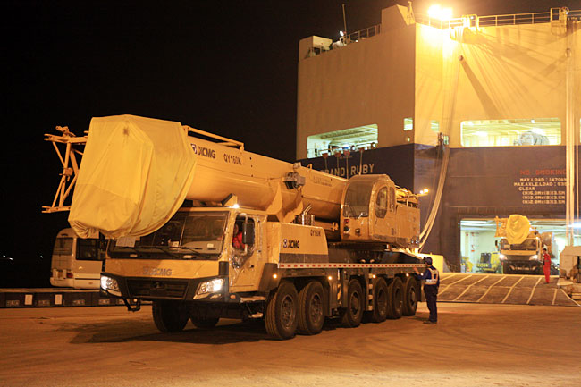 與以往批量出口不同的是,本批次起重機(jī)均是清一色的百噸級(jí)產(chǎn)品。其中,全球最大噸位的汽車起重機(jī)赫然其中,一眼望去,竟有數(shù)十臺(tái)之多。這是我國(guó)汽車起重機(jī)自走出國(guó)門以來(lái),首次大批量出口百噸級(jí)高端起重機(jī)產(chǎn)品。