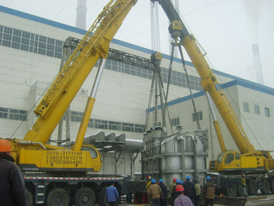 兩臺徐工起重機(jī)共同舉力