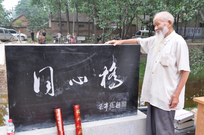 百歲老人劉宗磊手扶橋碑感慨地說:“橋連著咱們老區(qū)人民的心??!”