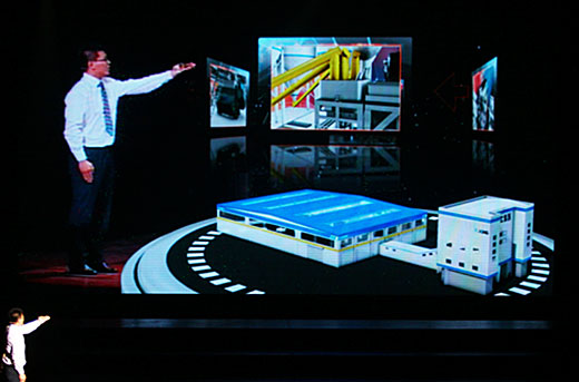 激情洋溢,熱情迸發(fā)。在晚會現(xiàn)場,四位領(lǐng)導與嘉賓共同啟動徐工新一代K系列成套裝備全球首發(fā)儀式。嘉賓將從歐洲萊茵河、南美洲亞馬遜河、北美洲密西西比河、中國長江引來的精益之水、卓越之水、科技之水、文明之水匯聚在一起,現(xiàn)場大屏立刻呈現(xiàn)曼妙的畫面,最終定格在徐工混凝土機械成套設(shè)備上,全場掌聲雷鳴,整個晚會氣氛達到了高潮。徐工新一代K系列混凝土機械成套裝備是徐工結(jié)合25年創(chuàng)新發(fā)展的智慧結(jié)晶,是融匯全球混凝土機械行業(yè)的尖端科技成果,集中體現(xiàn)了高效、節(jié)能、環(huán)保的特點,引領(lǐng)行業(yè)技術(shù)發(fā)展達到新的高度,現(xiàn)場還對徐工新一代K系列混凝土機械成套裝備進行了詳細的技術(shù)介紹。