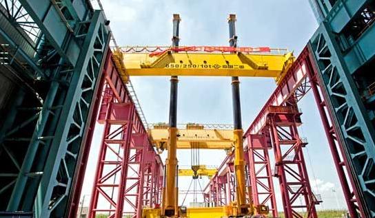 二、30米行車穿越28米軌道順利就位,平穩(wěn)流暢