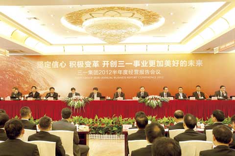 三一集團(tuán)半年度經(jīng)營報(bào)告會召開,梁穩(wěn)根作重要報(bào)告