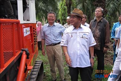 SWPH50采果機(jī)是山河智能針對(duì)馬來(lái)西亞等棕櫚種植大國(guó)開(kāi)發(fā)的一款用于棕櫚果采摘及技葉修剪的全新機(jī)型。該機(jī)器擁有完全自主知識(shí)產(chǎn)權(quán),結(jié)合剪技葉、摘果、收集果實(shí)、運(yùn)輸?shù)裙δ苡谝惑w,工作原理屬于國(guó)內(nèi)外首創(chuàng),已申請(qǐng)了PTC國(guó)際發(fā)明專(zhuān)利.。機(jī)器試制后已在馬來(lái)西來(lái)棕櫚園做過(guò)多次工業(yè)實(shí)驗(yàn),都取得了良好的效果。今年5月份馬來(lái)西亞國(guó)家科技部部長(zhǎng)、國(guó)家質(zhì)檢局長(zhǎng)等領(lǐng)導(dǎo)參加的現(xiàn)場(chǎng)演示會(huì)上,機(jī)器收割效果表現(xiàn)突出,獲得了各方的一致好評(píng)。