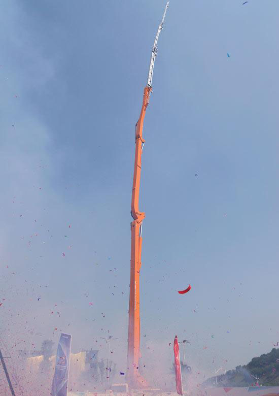 2012年9月28日,在新興工程機(jī)械之都長沙,世界工程機(jī)械龍頭企業(yè)中聯(lián)重科舉行盛大慶典活動(dòng),喜迎20周年華誕。為了獻(xiàn)禮20周年,同日,中聯(lián)重科還發(fā)布了三款創(chuàng)世界紀(jì)錄的產(chǎn)品,分別為X6泵車,D1250-80塔機(jī)和ZACB01輪式起重機(jī)。