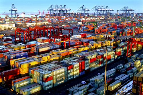 天津港集裝箱碼頭堆場(chǎng)(2007年1月29日攝)