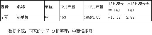 2012年1-12月寧夏起重機(jī)產(chǎn)量為16593.03噸。