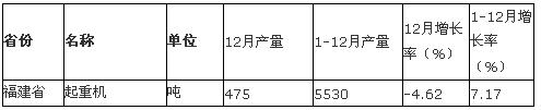 數(shù)據(jù)顯示:2012年1-12月福建省起重機(jī)產(chǎn)量為5530噸。