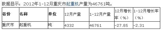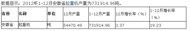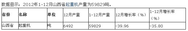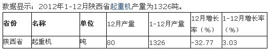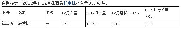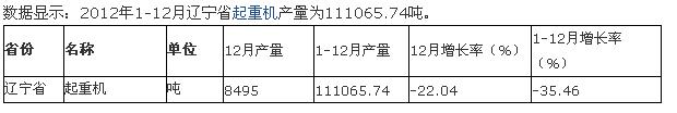 2012年1-12月六省一市起重機(jī)產(chǎn)量統(tǒng)計(jì)