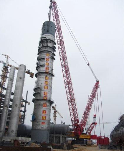 三一SCC16000履帶起重機(jī)圓滿完成茂名石化變換氣吸收塔下段吊裝作業(yè)