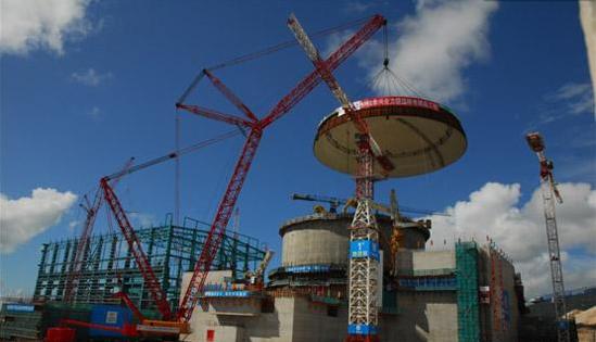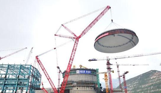 三一SCC16000履帶起重機(jī)圓滿完成廣東臺山核電站1#核島穹頂?shù)跹b作業(yè)