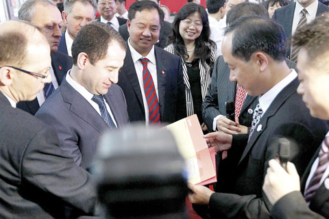 鄧海君向巴比奇贈(zèng)送三一重工紀(jì)念版郵票