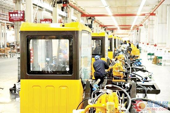 三一生產(chǎn)車間內(nèi)繁忙的挖掘機(jī)生產(chǎn)線
