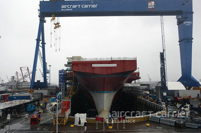 英國政府動用全國6大造船基地分別制造船體的8000噸重的模塊。船體的各部分先在海岸邊的船塢建造,然后由拖船將其拖到最后的拼裝船塢進行組裝。這種建造航母的方法看起來有些像小孩子玩了搭積木的游戲。