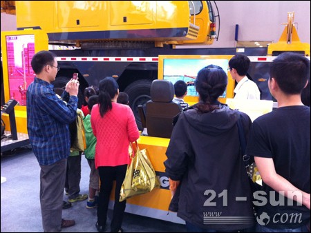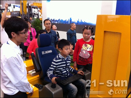 在近500平方米的徐工室內(nèi)展區(qū)內(nèi),吸引人眼球的除工藝精湛的展品、美輪美奐的沙盤模型外,徐工QAY500全地面起重機模擬操作系統(tǒng)成為一大賣點。現(xiàn)場,眾多工程機械用戶以及重慶市民帶著子女愉快地感受了大型起重機的模擬操作。