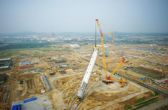 徐工XGC88000最大起重力矩88000t•m,是目前國(guó)際上起重能力最大的起重機(jī)。此次吊裝工況采用重型主臂108米,固定副臂33米,作業(yè)幅度30米,是全球唯一能夠滿足此次一體化吊裝的移動(dòng)起重設(shè)備。同時(shí)XGC88000配套施工的XGW1100千噸級(jí)工程專用溜尾機(jī)是中石化與徐工集團(tuán)針對(duì)重大件吊裝工程聯(lián)合研發(fā)的專用設(shè)備,也是在實(shí)施工程上的首次使用。