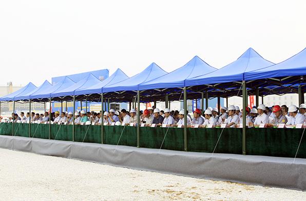 7月5日上午,煙臺(tái)萬華大型設(shè)備吊裝現(xiàn)場(chǎng)的觀禮臺(tái)上座無虛席,來自中石化、徐工集團(tuán)、萬華煙臺(tái)工業(yè)園、以及全國(guó)工程業(yè)主和建設(shè)系統(tǒng)的100多位項(xiàng)目負(fù)責(zé)人及嘉賓屏氣凝神,共同關(guān)注四千噸級(jí)履帶起重機(jī)首次啟用暨萬華煙臺(tái)工業(yè)園丙烯塔吊裝儀式。